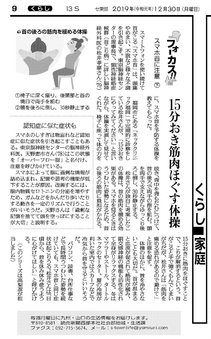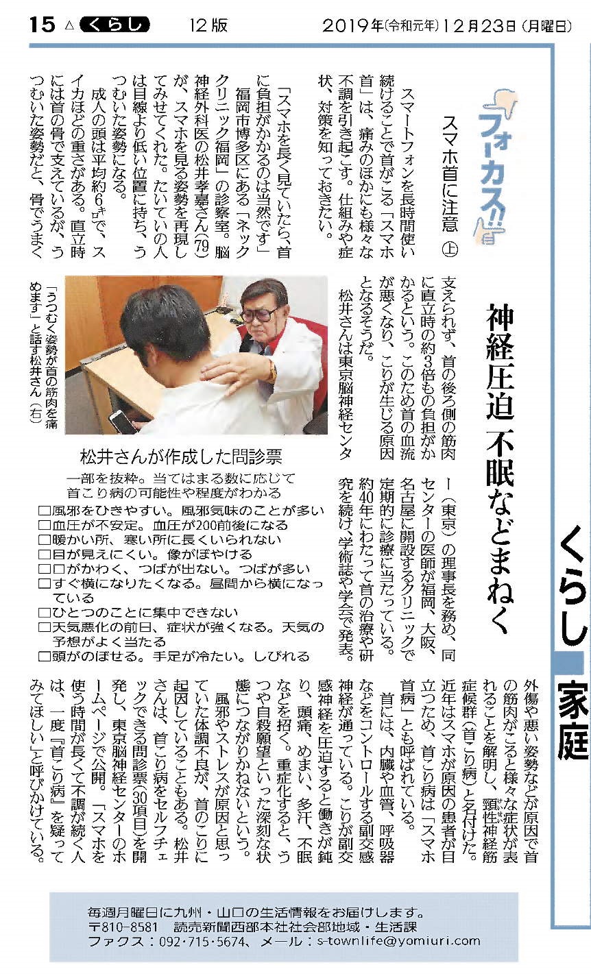 - 現在、大学病院などで総合診療科という科を設けているところがありますが、頚性神経筋症候群のわかるところが無いというのが現状です。