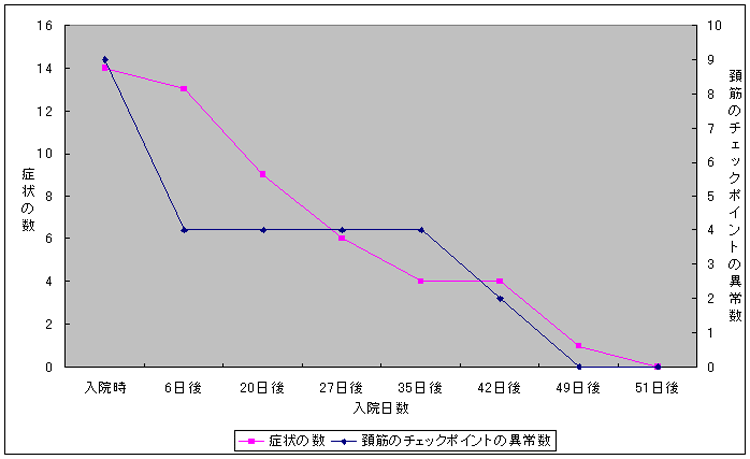 退院した。他覚的頚の筋肉の異常所見は全くなくなった。 |