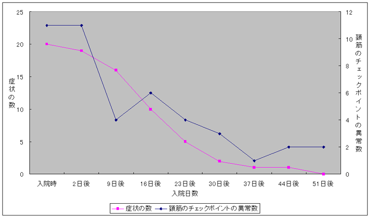 症状徐々に改善し、44日目には頚部の右上に一部異常を残すのみで、症状もほとんどがなくなる