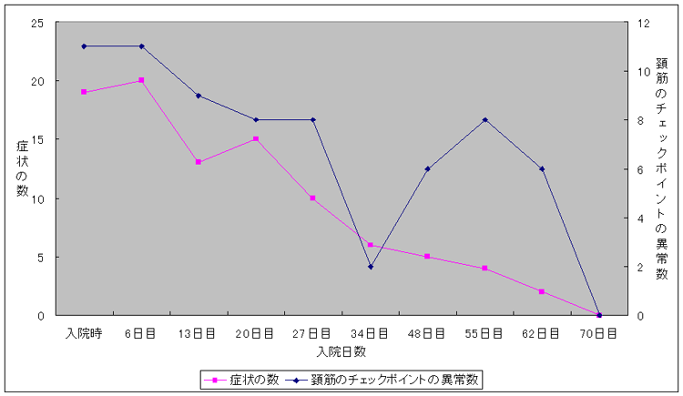 続いていた微熱がなくなり、四肢の冷感もなくなった。頚筋の異常も半減した。